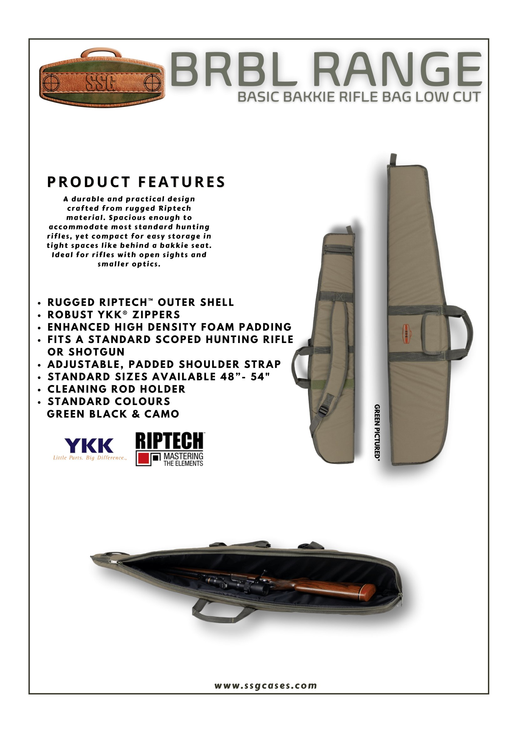Standard colours: green, black & camo