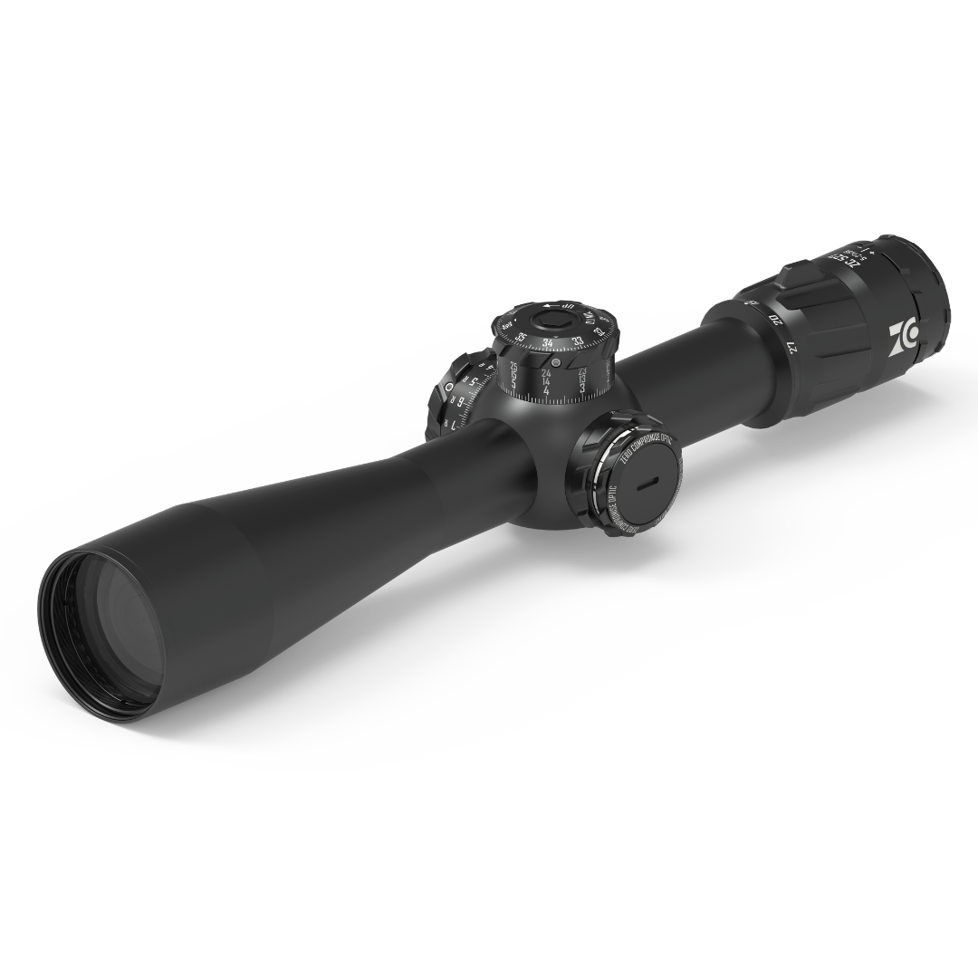The reticle features an open concept design above the primary horizontal crosshair as well as other enhancements to make it easy to use. The upper half of the reticle has the vertical crosshair only extend up to 3.0 Mils which provides sufficient hold-under capability and maintain a clear view for spotting trace as the bullet tracks toward the target. This reticle design features 0.2 Mil indications throughout the vertical and horizontal crosshair. Along the bottom edge of the primary horizontal crosshair we have 0.2 Mil hash marks that are visually distinguished by line lenghts. THe shorter lenghts are at 0.2 and 0.8 mil while 0.4 and 0.6 mil marks are slightly longer. This aids in rapid identification of these different hold points. Along the top edge we have a single hash mark at the 0.5 mil location making this very fast hold point to aquire.