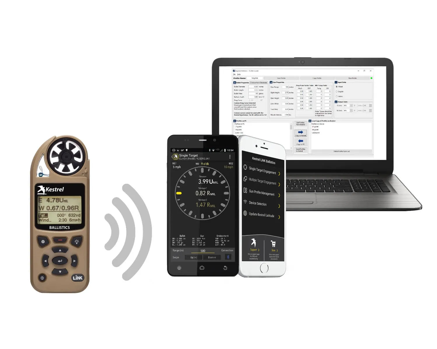 Buy the Kestrel 5700 with LiNK and get the power of the Kestrel LINK Ballistics app for Android or for iOS for free. Build and manage your gun/bullet profiles and download them to your Kestrel 5700 before you set out. At the range or match, secure your Kestrel 5700 to a tripod using the Kestrel Vane Mount (NOT included) and use the app to quickly adjust the target range and view the shooting solution and wind rose without leaving your shooting position. It’s like having a meteorologist and ballistician standing next to you while you shoot.