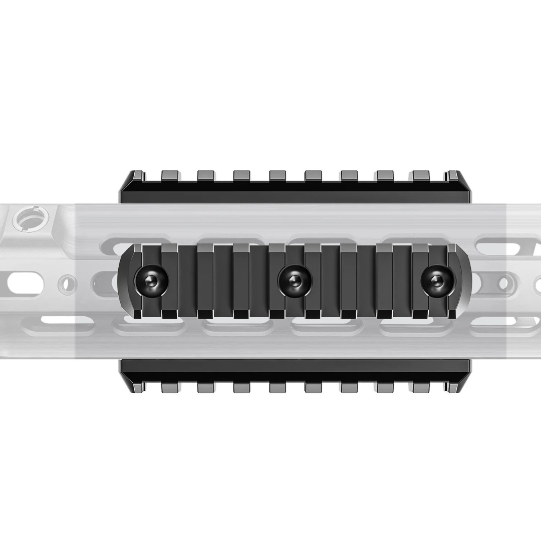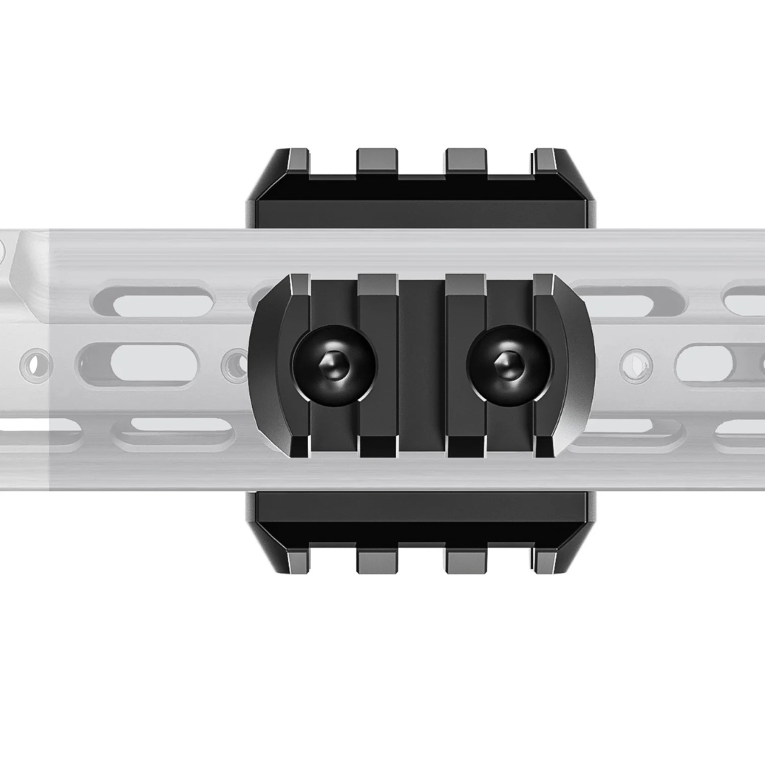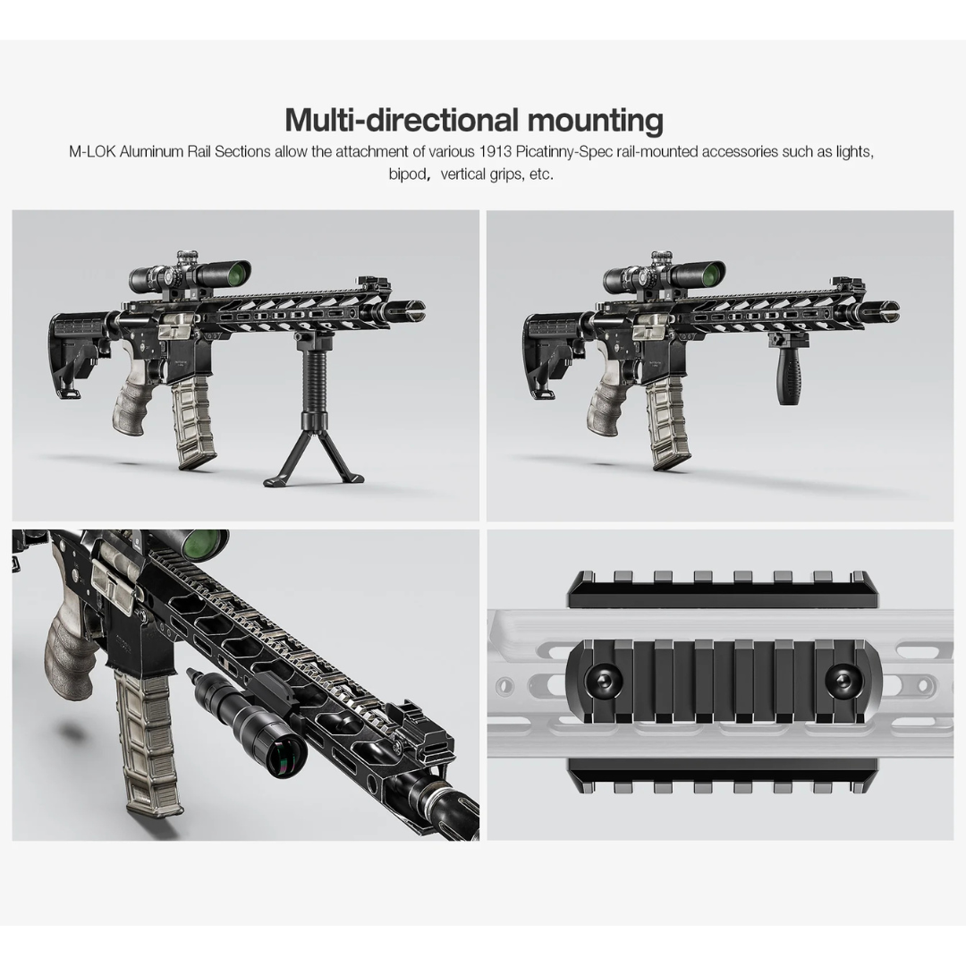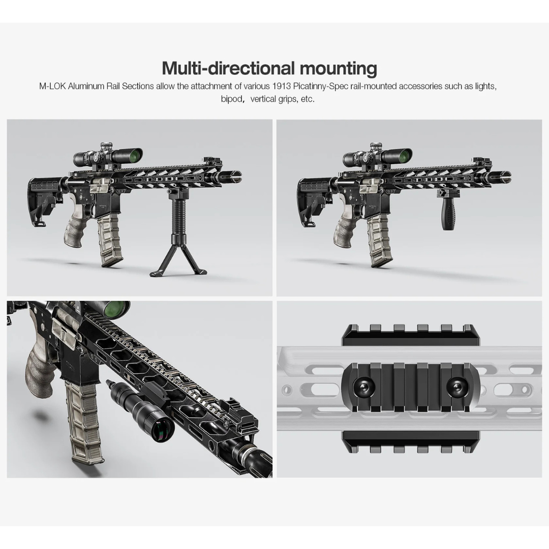 The Leofoto MLP Series M-LOK Quick Release Plate is Picatinny compatible. The plate is CNC machined from T6061 and hard anodized for durability and can be secured to the M-LOK handguard of compatible rifles. Rifle accessories can then be easily mounted via the picatinny rail.